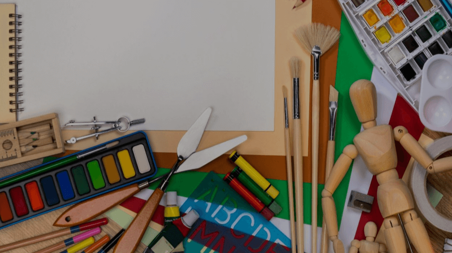 Get messy and encourage creativity with paints, papers, and craft tools.